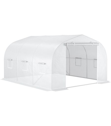Outsunny Garten-Tunnelgewächshaus dim. 3,5L x 3B x 2H m Tür + 6 aufrollbare Fenster Verzinkter Stahl PE-Hochdichte-Plane Weiß
