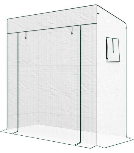 Outsunny Garten Gewächshaus anlehntes Gewächshaus mit 1 aufrollbaren Tür, verstärkte PE-Folie, 2 Fenster, Maße 196L x 77B x 197/178H cm Weiß