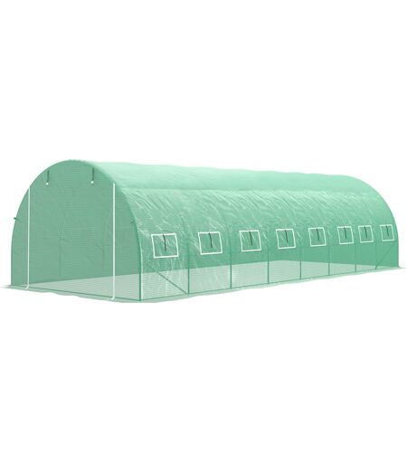 Outsunny Garten-Tunnel-Gewächshaus 24m² 8L x 3B x 2H m - 16 Fenster, aufrollbare Reißverschlusstür - Stahl-Galvanisierter Rohrrahmen, PE-Hochdichtungsabdeckung Grün