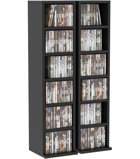 HOMCOM Set von 2 Säulenregalen CD-DVD Aufbewahrungsschrank 6 + 6 Fächer 21 x 22,5 x 88,5 cm maximale Kapazität 204 CD Schwarz