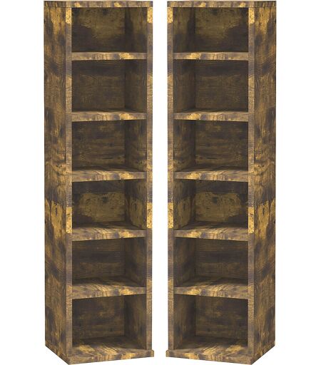 HOMCOM Set aus 2 Säulenregalen CD-DVD Aufbewahrungsschrank 6 + 6 Fächer 21 x 22,5 x 88,5 cm Kapazität max. 204 CD rustikales Braun