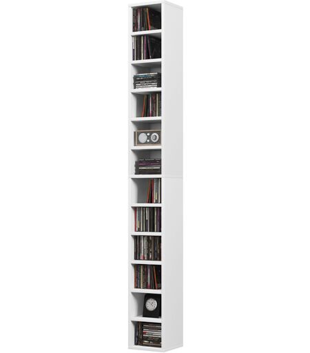 HOMCOM CD- und DVD-Aufbewahrung, CD/DVD-Regal mit 12 Fächern, Fassungsvermögen max. 204 CDs, 21 x 20 x 175 cm, Weiß