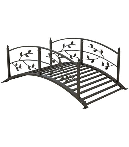 Outsunny Gartenbrücke - Teichbrücke - Gartendekoration dim. 119L x 67B x 47H cm mit Geländer Weinrankenmotiv Schwarz