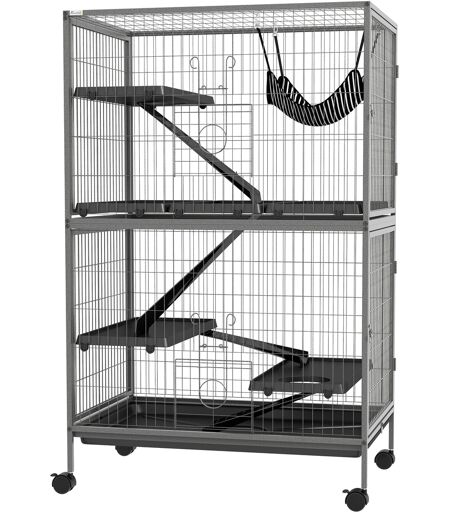 Pawhut Käfig für Nager Multifunktional 4 Plattformen 3 Rampen 4 Türen Abm. 80L x 52B x 128H cm Stahl Grau Silbern Schwarz