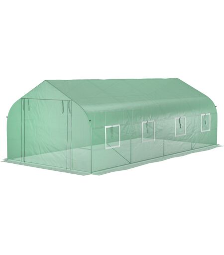 Outsunny Garten-Tunnelgewächshaus 600 x 300 x 200 cm Tür + 8 aufrollbare Fenster verzinktes Metall PE-Folie 140 g/㎡ ideal für alle Jahreszeiten Grün