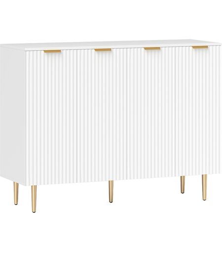 Der HOMCOM Buffetschrank ist schick und vielseitig und passt in jeden Raum. Mit zwei Doppeltürenschränken und verstellbaren Regalen eignet er sich ideal als Küchenaufbewahrung, Beistellschrank oder TV-Ständer für Bildschirme bis zu 55 Zoll. Optimieren Sie ganz einfach Organisation und Stil in Ihrem Zuhause!Beschreibung:Der Doppeltürenschrank bietet Platz für tägliche Accessoires und Utensilien3-stufig verstellbares Regal für unterschiedliche ObjekthöhenDas gerillte Design verleiht dem Innenraum eine moderne NoteDieser Küchenschrank kann als Buffetschrank, Badezimmerschrank oder Flurschrank dienenDie erhöhten Metallfüße erleichtern die ReinigungDas kippfeste Design dieses Aufbewahrungsmöbels verbessert die Sicherheit, indem es Stürze verhindertDie lackierte MDF-Konstruktion ist pflegeleichtMontage erforderlich ...