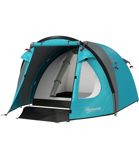 Outsunny Camping Zelt 2-4 Personen, familien Dome Zelt wasserdicht, mit Fenstern, Tasche, Tragetasche und Haken, für Picknick, Wandern, Trekking, Camping, Himmelblau