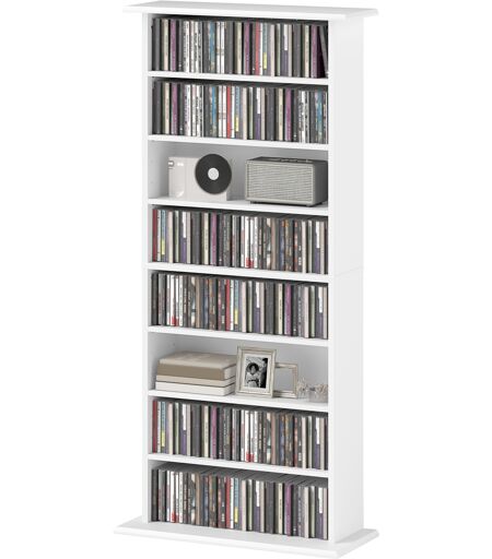 HOMCOM CD- und DVD-Aufbewahrungsregal, Multimedia-Aufbewahrung mit 8 Fächern und 6 verstellbaren Regalen, max. Kapazität 360 CDs/185 DVDs und Blu-rays, 58 x 24 x 124,5 cm, weiß