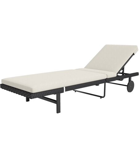 Outsunny Gartenliege mit Kissen aus Kunstharzgeflecht, verstellbarer Liegestuhl mit Rollen für Strand, Pool, Terrasse, 198 x 65 x 85 cm, Creme