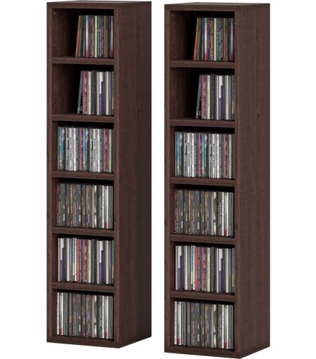 HOMCOM Set von 2 CD-DVD-Speicherschränken mit 6 + 6 Fächern 21 x 19,2 x 88,3 cm maximale Kapazität 160 CDs braune Holzoptik