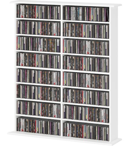 HOMCOM CD und DVD Aufbewahrung, Medienschrank mit 16 Fächern und 12 verstellbaren Regalen, max. Kapazität 720 CD/396 DVD und Blu-ray, 106,5 x 24 x 123,7 cm, weiß