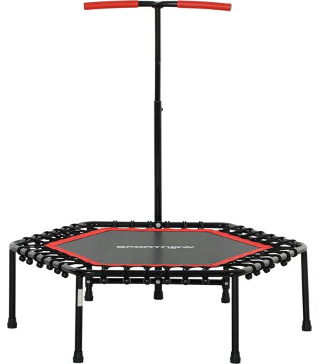 SPORTNOW Fitness-Trampolin 114 cm mit elastischen Seilen, verstellbarer Griff in 3 Positionen, stabiles und leises Übungstrampolin bis 100 kg Belastung für Indoor-Training, Rot