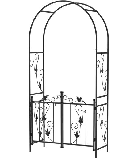 Die Outsunny Rosenbogen aus Stahl verwandelt den Eingang zu Ihrem Garten. Pflanzen Sie Reben oder dekorieren Sie mit Lichtern und Ballons für Partys oder Geburtstage. Schaffen Sie eine märchenhafte Atmosphäre mit unserem Hochzeitsbogen, ideal für den Einstieg in die Gartenarbeit und die Verschönerung Ihrer Veranstaltungen.Beschreibung:Dient als dekorativer Bogen für Rankpflanzen und GitterDieser Gartenbogen besteht aus pulverbeschichtetem Stahl, der für den Außenbereich geeignet istWunderschönes Doppeltor mit Verriegelung für mehr PrivatsphäreEinfach in den Rasen mit Erdspießen zu installierenPads für die Installation auf einer harten OberflächeDieser Gartenbogen im Freien kann mit lebendigen Blumen, Luftballons, Laub, Lichtern oder anderen Elementen dekoriert werdenZusätzliche Befestigungen erforderlichMontage erforderlich ...