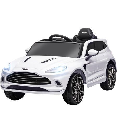AIYAPLAY Elektrisches Kinderfahrzeug lizenziert als Aston Martin DBX, Elektrofahrzeug 12V, mit 2,4G Fernbedienung, LED-Scheinwerfern, Musik, Hupe, Federungssystem, für 3-6 Jahre, weiß