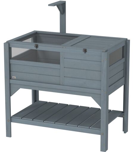 PawHut Haus mit Gehege für Schildkröten auf Standfuß mit Regal - aus Tannenholz - für Innen und Außen - Abm. 103H x 84B x 51T cm
