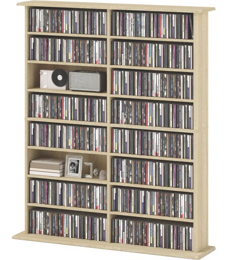 HOMCOM CD- und DVD-Aufbewahrung, Multimedia-Aufbewahrungsregal mit 16 Fächern und 12 verstellbaren Regalen, max. Kapazität 720 CD/396 DVD und Blu-ray, 106,5 x 24 x 123,7 cm, Naturholz