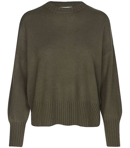 Damen Pullover aus Kaschmir Rundhalsausschnitt Langarm Überschnittene Schultern Gerippte Bündchen an Ärmel und Saum Unifarben Lockere Passform Farbbezeichnung: Khaki Material: 100% Kaschmir ...