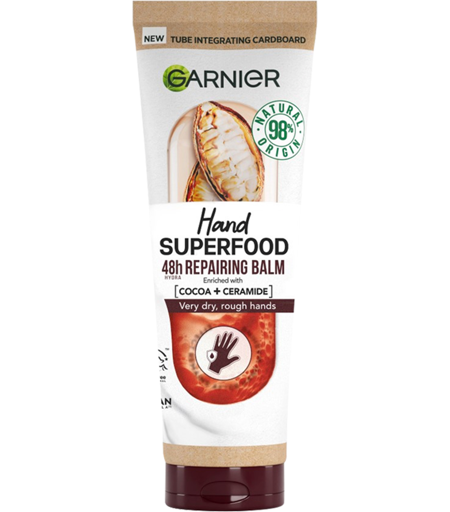 Garnier Vegan Hand Superfood, Repairing Hand Cream with Cocoa and Ceramide for Very Dry, Rough Hands 75ml