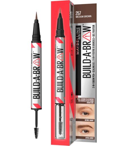 The Maybelline Build-A-Brow 2 Easy Steps Eye Brow Pencil and Gel works to create natural, fuller-looking brows in two simple steps. The two-in-one tool includes a sleek brow pen and a sealing gel to shape and lock in the look of your newly sculpted brows. Lasting up to 24 hours, both formulas are sweat-proof and smudge-resistant. Vegan. ...