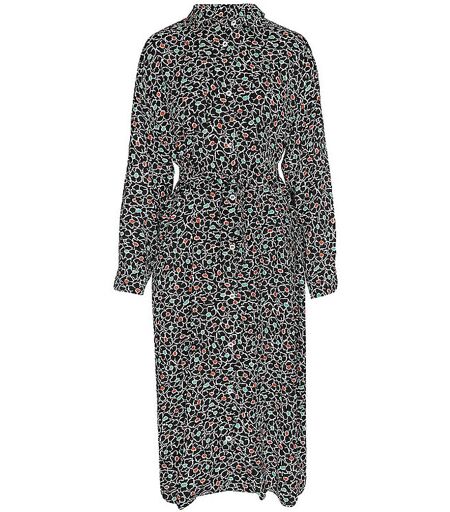 Damen Midikleid aus Viskose Blusenkragen Langarm mit Manschette Aufgesetzte Brusttaschen Schließt mit durchgehender Knopfleiste Taille mit tonalem Bindegürtel Florales Allovermuster Seitliche Eingrifftaschen Gerade geschnitten Farbbezeichnung: Black Material: 51% EcoVero Viskose, 49% Viskose ...