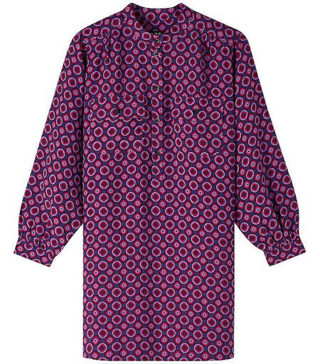Damen Kleid aus reiner Viskose Stehkragen Halbe Knopfleiste Langarm Manschetten Zwei Eingriffstaschen mit Knopfverschluss auf der Brust Allover Grafik-Print Lockere Passform Farbbezeichnung: Fuchsia Material: 100% Viskose FSC FSC-Viskose ist eine nachhaltigere Variante von Viskose . FSC steht für Forest Stewardship Council und Viskose mit diesem Label stammt aus nachhaltig bewirtschafteten Wäldern ...