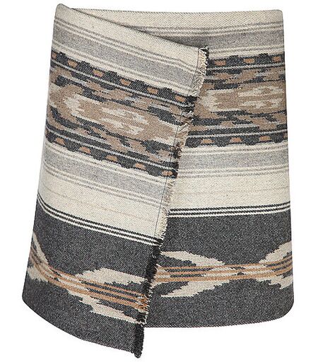 Damen Wickel-Minirock aus Mischwolle mit grafischem Muster Druckknopfverschluss seitlich Innen gebunden Innengürtel aus Ripsband Abschlüsse mit Fransen Ethnomusterung Gerader Schnitt Farbbezeichnung: Faded Black Länge:ca:39cm. Material: 58% Wolle, 18% Polyester, 14% Acryl, 6% Polyamid, 4% andere Fasern ...