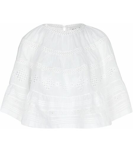 Damen Blusenshirt aus reiner Baumwolle Rundhalsausschnitt Weiter, verkürzter Ärmel Stickereien und Häkel-Details Locker geschnitten Unifarben Farbbezeichnung: White Material: 100% Baumwolle ...