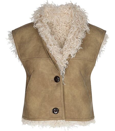 Damen Wendegilet in Lammfelloptik Schalkragen Schließt mit zwei Knöpfen Ohne Arm Eingesetzte Seitentaschen Kurzer Schnitt Gerade Passform Unifarben Farbbezeichnung: Taupe Material: 100% Polyester ...