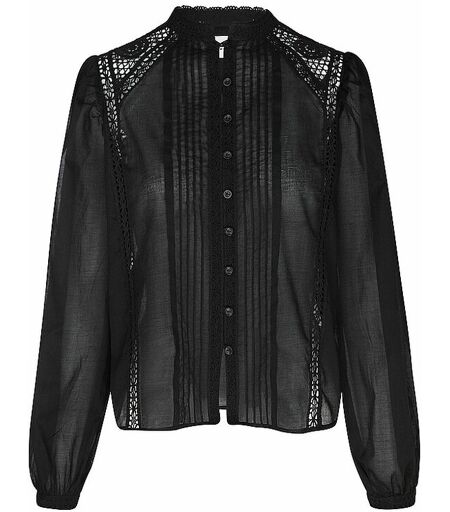 Damen Bluse aus Baumwollvoile und Spitze Mit Spitze eingefasster Rundhalsausschnitt Einsätze aus durchbrochener Spitze an den Schultern Knopfverschluss auf der Vorderseite Lange Ärmel mit feinen, geknöpften Semitransparent Manschettenabschlüssen Gerader Schnitt Farbbezeichnung: Black Material: 100% Baumwolle ...
