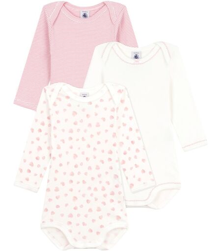 Petit Bateau 3er-Pack Bodys langarm Herzen Ringel - natur rosa - Maedchen - Size: 86