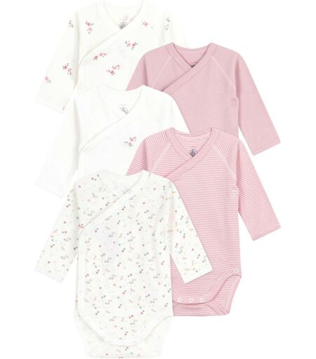 Petit Bateau 5er-Pack Wickelbodys langarm Blumen Ringel - natur rosa - Maedchen - Size: 74
