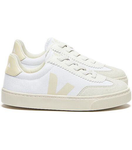 Kinder Sneakers aus Canvas Mit Schnürung Logo seitlich Farbbezeichnung: White Calcaire Material: Canvas (100 % Bio-Baumwolle) Innenmaterial: E.V.A. auf Biobasis (55 % Zuckerrohr) und Bio-Baumwolle (19 % Außensohle: Amazonas-Gummi (31%), mineralisches Silizium (27%), synthetischer Gummi (24%) und andere (18% ...