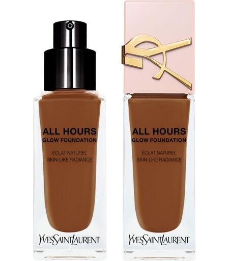 The brand’s iconic foundation, now with a radiant finish. The YSL All Hours Glow Foundation combines luminous hydration with long-lasting coverage, leaving the skin with a naturally lit, soft-focus effect. Infused with skincare ingredients such as hyaluronic acid, niacinamide and macadamia oil, the formula delivers comfortable moisture with brightening benefits. Its lightweight serum texture allows you to build to your desired coverage without any heaviness, while balancing out the look of tone, texture and impurities with an all-day fresh finish. ...