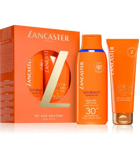 Lancaster Sun Beauty, , Für längere Bräune für Damen, Das Produkt Lancaster Sun Beauty bietet der von der Sonne belasteten Haut die notwendige Pflege und verlängert gleichzeitig die Bräune. Das Set beinhaltet: Sonnenmilch SPF 30 175 ml Body Lotion Bräunungsverlängerer 125 ml Eigenschaften: ideal als Geschenk geeignet verlängert das gebräunte Aussehen ...