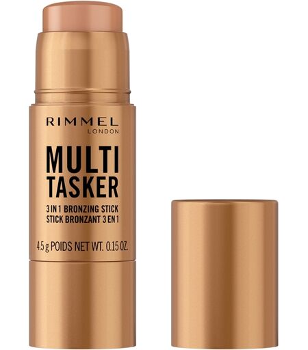Create a contoured glow with the Rimmel Multi-Tasker Bronzer & Highlighter Stick, a skincare-infused formula that adds warmth to the complexion with a luminous finish. Infused with vitamins C and E, the lightweight bronzer hydrates the skin while working to visibly brighten, supporting an even tone and texture over time. Its fresh, dewy texture melts seamlessly into the skin and over pre-applied products, making it ideal as a bronzy base, mixing into your blush to ‘blonze’ or as a sculpting sheer pop of colour. ...