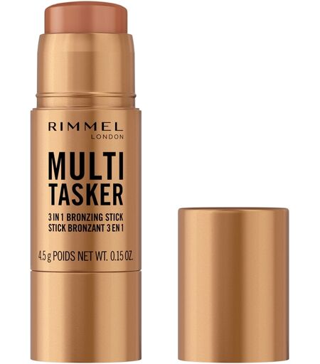 Create a contoured glow with the Rimmel Multi-Tasker Bronzer & Highlighter Stick, a skincare-infused formula that adds warmth to the complexion with a luminous finish. Infused with vitamins C and E, the lightweight bronzer hydrates the skin while working to visibly brighten, supporting an even tone and texture over time. Its fresh, dewy texture melts seamlessly into the skin and over pre-applied products, making it ideal as a bronzy base, mixing into your blush to ‘blonze’ or as a sculpting sheer pop of colour. ...