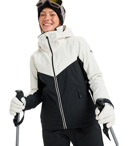 Funktionelle Schneejacke für Frauen. Die Eigenschaften dieses Produkts sind: Technologie: 10K ROXY DryFlight-Imprägnierung [10.000 mm / 5.000 g] für bessere Wasserdichtigkeit und Atmungsaktivität, Wärme: ROXY WarmFlight X2 Geringes Volumen, leichte, atmungsaktive Isolierung, Isolierung: 70 % recycelt [Füllgewicht: 120 g Körper, 100 g Ärmel, 60 g Kapuze], Passform: Schmal, figurbetont in mit kürzerer Länge für eine schmeichelhafter femininer Look, ÖKO-MASSNAHMEN: Hergestellt aus mindestens 70 % recycelten Fasern, Außenmaterial enthält Garn aus recycelten Textilabfällen, PFAS-freie, wasserabweisende Beschichtung, Außenmaterial: Reines recyceltes Polyester, Nähte: Nahtverklebung an kritischen Stellen, Futter: Leichtes Taft mit gebürstetem Trikot-Stoff für Wärme und Atmungsaktivität, Kapuze: Auf 2 Arten verstellbare und abnehmbare Kapuze, Schneefang: Fester, verstaubarer Schneefang aus Taft mit Befestigungsystem für Jacke und Hose, Taschen: 2 Handwärmtaschen mit Reißverschluss und Schlüsselclip, Skipasstasche im Ärmel, Belüftung: Mit Mesh gefütterte Belüftungsöffnungen unter den Armen zur Temperaturregulierung, Bündchen/Manschette: Innere elastische Handgelenkgamaschen mit Daumenloch, Verstellbare Manschetten und perforierter Kinnschutz mit Roxy-Logo. Details: Technologie: 10K ROXY DryFlight-Imprägnierung [10.000 mm / 5.000 g] für bessere Wasserdichtigkeit und Atmungsaktivität Wärme: ROXY WarmFlight X2 Geringes Volumen, leichte, atmungsaktive Isolierung Isolierung: 70 % recycelt [Füllgewicht: 120 g Körper, 100 g Ärmel, 60 g Kapuze] Passform: Schmal, figurbetont in mit kürzerer Länge für eine schmeichelhafter femininer Look ÖKO-MASSNAHMEN: Hergestellt aus mindestens 70 % recycelten Fasern Außenmaterial enthält Garn aus recycelten Textilabfällen PFAS-freie, wasserabweisende Beschichtung Außenmaterial: Reines recyceltes Polyester Nähte: Nahtverklebung an kritischen Stellen Futter: Leichtes Taft mit gebürstetem Trikot-Stoff für Wärme und Atmungsaktivität Kapuze: Auf 2 Arten verstellbare und abnehmbare Kapuze Schneefang: Fester, verstaubarer Schneefang aus Taft mit Befestigungsystem für Jacke und Hose Taschen: 2 Handwärmtaschen mit Reißverschluss und Schlüsselclip, Skipasstasche im Ärmel Belüftung: Mit Mesh gefütterte Belüftungsöffnungen unter den Armen zur Temperaturregulierung Bündchen/Manschette: Innere elastische Handgelenkgamaschen mit Daumenloch, Verstellbare Manschetten, perforierter Kinnschutz mit Roxy-Logo Material: 100 % recyceltes Polyester Farbbezeichnung: True Black ...