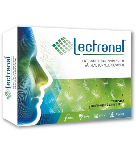 Bitte achten Sie auf eine abwechslungsreiche und ausgewogene Ernährung und gesunde Lebensweise. Lectranal® Lectranal® ist die natürliche Hilfe bei Allergie, da es die Entstehung der Allergiesymptome verhindert, anstatt sie nur vorübergehend zu unterdrücken, in dem es das Immunsystem effektiv moduliert und unangenehme Allergiesymptome von vorn herein verhindert. Zutaten: Eine Kapsel enthält 80 mg des Extraktes der Astragalus membranaceus radix (Traganthwurzel). Gesamten Inhaltsstoffe: Maltodextrin, Calciumcarbonat, Astragalus membranaceus, Vitamin C, Magnesiumsalze von Speisefettsäuren (Trennmittel) Laktose- und Glutenfrei. Zusammensetzung pro Kapsel Lectalin 80 mg Calcium 60 mg Vitamin C 20 mg Verzehrempfehlung: Empfohlene Tagesdosis:2x1 Kapsel täglich (entspricht 160 mg Lectalin®), 2x2 Kapseln täglich (entspricht 320 mg Lectalin®) Frühzeitige Anwendung Anwendung bei akuten Symptomen Erhaltungsanwendung (Langzeitbehandlung) 2-4 Wochen vor erwarteter Allergiesaison 2-mal 1 Kapsel Bis zur Verbesserung der Allergiesymptome 2-mal 2 Kapseln Während der gesamten Allergiesaison 2-mal 1 Kapsel täglich Es ist empfehlenswert einen Monat vor Beginn der Allergiesaison das Immunsystem mit der Einnahme von Lectranal® vorzubereiten und die Einnahme während der gesamten kritischen Zeit fortzusetzen. Die empfohlene Dosierung beträgt dabei 2 x 1 Kapsel (morgens und abends je 1 Kapsel) auf nüchternen Magen, etwa eine halbe Stunde vor den Mahlzeiten. Sie können Lectranal® auch bei schon bestehenden Allergiesymptomen einnehmen. In diesem Fall ist es jedoch notwendig, dass Sie eine stärkere Dosis einnehmen – 2 x 2 Kapseln am Tag. Bei Symptombesserung können Sie die Dosis wieder auf 2 x 1 Kapsel reduzieren. Hinweis: Die angegebene empfohlene Tagesmenge darf nicht überschritten werden. Aufbewahrung: Kühl (6-25 °C) und lichtgeschützt lagern. Außerhalb der Reichweite von Kindern aufbewahren. Nettofüllmenge: 120 Kapseln = 77,6 g Herstellerdaten:ERWO Pharma GmbHEuroparing F08/1012345 Brunn am Gebirge ...