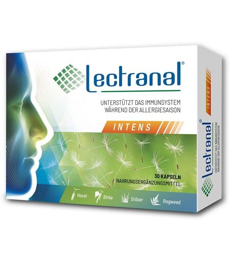 Bitte achten Sie auf eine abwechslungsreiche und ausgewogene Ernährung und gesunde Lebensweise. Lectranal® Intens Lectranal® Intens ist die natürliche Hilfe bei Allergie, da es die Entstehung der Allergiesymptome verhindert, anstatt sie nur vorübergehend zu unterdrücken, in dem es das Immunsystem effektiv moduliert und unangenehme Allergiesymptome von vorn herein verhindert. Zutaten:160 mg Lectalin® (Traganthwurzelextrakt, Astragalus membranaceus radix, geschütztes Herstellungsverfahren); 120 mg Calcium; 40 mg Vitamin C Gluten- und Laktosefrei. Zusammensetzung pro Kapsel Lectalin 160 mg Calcium 120 mg Vitamin C 40 mg Verzehrempfehlung: Frühzeitige Anwendung Anwendung bei akuten Symptomen Erhaltungsanwendung (Langzeitbehandlung) 2 - 4 wochen vor erwarteter Allergiesaison 1 - mal 1 Kapsel täglich Bis zur Verbesserung der Allergiesymptome 2 - mal 1 Kapsel täglich Während der gesamten Allergiesaison 1 - mal 1 Kapsel täglich Hinweis: Die angegebene empfohlene Tagesmenge darf nicht überschritten werden. Aufbewahrung: Kühl (6-25 °C) und lichtgeschützt lagern. Außerhalb der Reichweite von Kindern aufbewahren. Nettofüllmenge:30 Kapseln = 19,69 g Herstellerdaten: ERWO Pharma GmbH Europaring F08/1012345 Brunn am Gebirge, Austria ...
