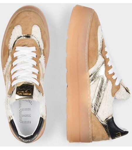 MJUS Sneaker mit Metallic- und Teddyfell-Elementen beige / goldfarben 39
