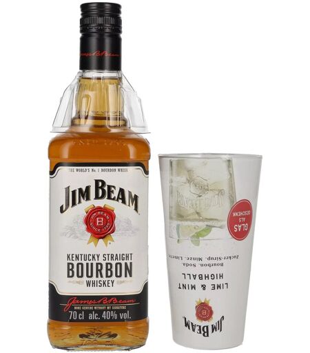 Jim Beam Kentucky Straight Bourbon Whiskey 40% Vol. 0,7l mit Highball Glas