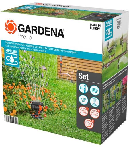 Gardena Start-Set Pipeline mit Viereckregner, Wasserhahn