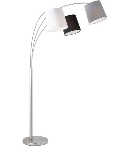 JUST LIGHT Stehleuchte »Melvin« Farbe: Lampenschirme 1x grau, 1x weiß, 1x schwarz Gehäuse silberfarben Material: Lampenschirme Textil Gehäuse Eisen Maße: B x H x T ca. 100 x 190 x 70 cm Kabellänge ca. 2 m Inhalt: Inkl. Bedienungsanleitung Gewicht: Ca. 9 kg Leistung: Max. 40 W Technische Details: Schutzklasse II Schutzart IP20 Betriebsspannung 230 V Lampentyp Fassung E27 Energieeffizienz Quecksilber 0 mg Brennstellen 3 Nennleistung max. 40 Watt, exklusive LM Nennspannung 230 V Sonstige Hinweise: B x H x T Packstück ca. 42 x 135,5 x 25,5 cm. Gewicht ca. 13 kg Garantiegeber und Hersteller: JUST LIGHT GmbH, Olakenweg 36, 59457 Werl info@JUST-LIGHT.info Herstellergarantie: 5 Jahre Garantieumfang: auf das gesamte Produkt Räumlicher Geltungsbereich: Deutschland und Österreich Hersteller-Artikelnummer: 15461-55TC Hersteller-EAN: 4043689003814 Wohnliches Ambiente durch 3 farbige Stoffschirme3-flammige BogenleuchtePerfekt für eine Leseecke oder neben dem SofaFassungen: E27 – Leuchtmittel nicht enthaltenDreh- und schwenkbarKippschalter am Gestänge ...