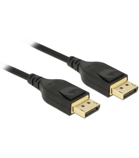 Das DisplayPort Kabel 85660 von Delock dient dem Anschluss von Geräten mit DisplayPort Schnittstelle, wie Bildschirmen, Beamern oder Fernsehgeräten, an einen PC oder ein Notebook mit DisplayPort Buchse. Durch die Unterstützung einer Bandbreite von 32,4 Gb/s können Inhalte in 8K Ultra HD (7.680 x 4.320 @ 60Hz), 5K (5.120 x 2.880 @ 120Hz) und 4K Ultra HD (3.840 x 2.160 @ 240Hz) Auflösung wiedergegeben werden. Das hochwertige, dreifach geschirmte Kabel verbessert außerdem die Qualität von Audioübertragungen durch die Abtastrate von bis zu 1.536 kHz deutlich. ...