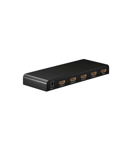 Der goobay 58482 HDMI Splitter erweitert Ihre MöglichkeitenDer goobay 58482 HDMI Splitter kann verwendet werden, um das Eingangssignal von einer Quelle auf mehrere Ausgabegeräte zu verteilen.Diese Anschlüsse machen eine optimale Verbindung möglichMit dem goobay 58482 HDMI Splitter können Sie Ihre Geräte in Windeseile anschließen, und zwar über HDMI-Buchse und 4x HDMI-Buchse.Mit diesen Besonderheiten punktet der ArtikelDas macht dieses Produkt besonders: Teilt 1x HDMI-Eingangssignal auf 4x HDMI-Ausgänge auf, spiegelt sowohl Audio- als auch Videosignale parallel auf die angeschlossenen Geräte, z. B. für die gleichzeitige Projektion in verschiedenen Räumen, LED-Anzeige signalisiert, welche Anschlüsse aktiviert sind.Werfen Sie einen Blick auf diese weiteren MerkmaleDank der zeitlosen Farbgebung in Schwarz passt das Produkt optimal in jede Büroeinrichtung, ohne unangenehm hervorzustechen.Schnelle Übertragung garantiertSie profitieren von einer Datenübertragungsrate von max. 10,2 Gbit/s.Trifft, wonach Sie suchen?Dann bestellen Sie gleich hier den goobay 58482 HDMI Splitter und überzeugen Sie sich selbst von dessen Qualitäten! Netzteil erhalten Sie beim Kauf inklusive. ...