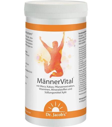 Anwendungsgebiet von Dr. Jacob's MännerVital mit Maca, Arginin & 17 VitalstoffenDr. Jacob's MännerVital mit Maca, Arginin & 17 Vitalstoffen ist ein Getränkepulver mit Maca, Kakao, Guarana, Pflanzenextrakten, Vitaminen & Mineralstoffen – für Immunsystem, Testosteronspiegel & Fruchtbarkeit