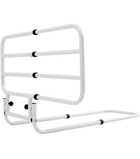 Wenn das Hinsetzen, Aufrichten oder Aufstehen aus dem Bett alters-, krankheits- oder verletzungsbedingt schwierig wird, braucht es eine ebenso einfache wie praktische Lösung. Zum Beispiel ein ausziehbares Bettgeländer. Sein Seitenteil dient als Stütze beim Hochziehen im Bett und hilft beim Hinsetzen und Aussteigen aus dem Bett. Damit sorgt es für mehr Unabhängigkeit, Komfort und Sicherheit. Und es erfüllt noch einen anderen Sicherheitszweck: Dank seiner Höhe von 50 Zentimetern verhindert das Seitenteil als natürliche Begrenzung ein Hinausfallen aus dem Bett - selbst bei einem sehr unruhigen Schlaf kann hier nichts passieren. Das weiß lackierte Stahlgestell ist 3,5 Kilogramm leicht und braucht keine aufwendige Installation. Es lässt sich ganz einfach und schnell unter die Matratze schieben. Dann gilt es, die richtige Breite auszuwählen. Nach der Anpassung des Gestells an die Bettbreite wird es mit einer entsprechenden Befestigung am Lattenrost fixiert, sodass es einen festen Halt bekommt und nicht verrutscht.Bei Nichtgebrauch lässt sich das Seitenteil herunterklappen. Wird das komplette Bettgeländer längere Zeit nicht gebraucht, kann die Befestigung ebenso einfach wieder gelöst und das gesamte Gestell unter der Matratze hervorgezogen werden. Zusammengeklappt ist es gerade einmal 16 Zentimeter hoch und lässt sich auf diese Weise relativ platzsparend verstauen.Auch ein Bettenwechsel ist kein Problem, denn das Seitenteil lässt sich auf die benötigte Breite und Tiefe ausziehen. Je nach Körperlänge und Bedarf kann es auf eine Länge zwischen 55 und 72 Zentimetern und eine Tiefe von 79-89 Zentimetern ausgezogen werden. Das Seitenteil ist bis zu einem Gewicht von 70 Kilogramm belastbar. Im Gesamten ist das Gestell auf ein Körpergewicht von bis zu 120 Kilogramm ausgerichtet. ...