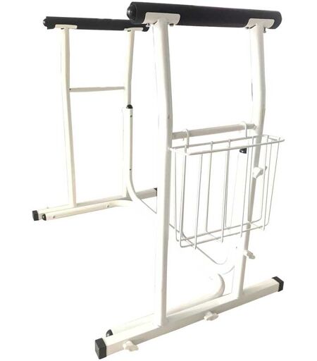 Das Aufstehen aus einer sitzenden Position ist ein komplexer Vorgang. Das wird uns allerdings meist erst dann bewusst, wenn es Schwierigkeiten bereitet. Dann kann es ein zeitraubender und anstrengender Bewegungsablauf werden, der zu Frustrationen führt. Plötzlich ist man in seiner Mobilität eingeschränkt und womöglich auf Hilfe angewiesen. Dabei lässt sich häufig mit einem praktischen Aufsteh- und Stützgeländer Abhilfe schaffen und das Aufstehen wieder selbständig bewältigen. Die Gefahr einer Überanstrengung oder eines Sturzes schwindet und das Leben wird etwas unbeschwerter. Unabhängig davon, ob der Grund für die Bewegungseinschränkung nur vorübergehend oder dauerhaft ist, mit dem Aufsteh- und Stützgeländer lässt sich der Gang zur Toilette, das Aufstehen aus dem Bett oder vom Sofa selbständig bewältigen. Es kann während einer Schwangerschaft, nach einem Beinbruch oder nach einer Operation zum Einsatz kommen und ist auch dann eine große Hilfe, wenn im Laufe der Zeit die Kräfte ein wenig schwinden und das Aufstehen mühsamer wird. Ist eine helfende Person zugegen, wird auch sie entlastet, da zur Unterstützung ein wesentlich geringerer Kraftaufwand nötig ist. Die Vorrichtung wird einfach in der richtigen Position aufgestellt, eine Boden- oder Wandmontage ist nicht notwendig. Der stabile Rahmen des Aufsteh- und Stützgeländers ist aus hochwertigem Stahl gefertigt. Kunststoffpuffer sorgen für einen festen Stand und verhindern ein Rutschen und Kratzer auf dem Boden. Ein Schaumstoffüberzug verleiht den ergonomischen Griffen eine gute Griffigkeit und ermöglicht einen festen, sicheren Halt. Die Aufstehhilfe ist mit einem Ablagekorb ausgestattet, der rechts oder links eingehängt werden kann. In ihm lassen sich Accessoires wie Zeitung, Buch oder Smartphone griffbereit aufbewahren. Das für den Aufbau benötigte Montagewerkzeug ist im Lieferumfang enthalten. Wird die Aufstehhilfe nicht mehr benötigt, lässt sie sich auch schnell wieder zerlegen. ...