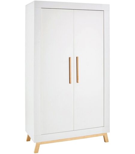 Zeitloser Scandi-Look und viel Stauraum – dieser Kleiderschrank begleitet Deinen Nachwuchs von der Geburt bis ins Teenageralter. Material: Buche massiv und Melamin Innenausstattung: 2 Böden, 1 Kleiderstange besondere Funktionen: Soft-Close-System Maße: 194(H) x 108(B) x 53(T) cm Der zweitürige Kleiderschrank überzeugt mit angesagtem Scandi-Look und Details aus massiver Buche. Hinter den beiden Türen bietet er Platz für Kleidung, Wäsche und Schühchen. Eine Kleiderstange und zwei Böden sorgen dabei für Ordnung. Das innovative Soft-Close-System schließt die Schranktüren besonders leise. Hinweis ACHTUNG: Bitte bei der Bestellung eine Telefonnummer angeben, da dieser Artikel mit der Spedition angeliefert wird. ...