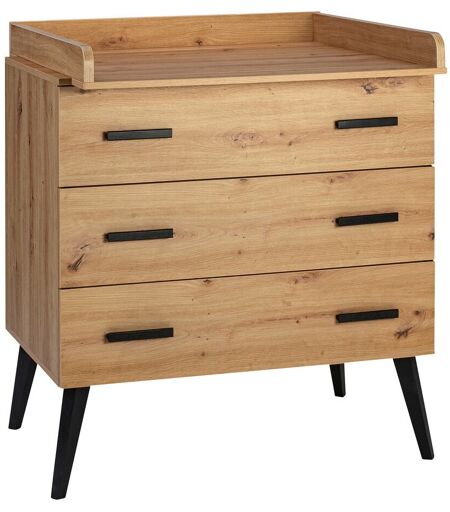 Die Wickelkommode Morris Oak von Schardt hält viel Platz bereit, wenn Du Deinem Nachwuchs die Windeln wechseln oder ihn umziehen möchtest. In den drei Schubfächern kannst Du griffbereit alles unterbringen, was Du zum Wickeln benötigst. Material: Korpus und Fronten Holzdekor Artisan Oak, Füße Buche Massivholz anthrazit lackiert, Made in Germany Ausstattung: 3 Schubladen mit extra starken seitlichen Führungsschienen, abnehmbarer Wickelaufsatz Funktionen: Self-Soft-Close-System Maße: 90(B) x 53/72(T) x 102(H) cm, Wickelhöhe 94 cm Die Wickelkommode Morris Oak von Schardt besitzt eine große Ablagefläche, die mit seitlichen Begrenzungen ausgestattet ist. So liegt Dein Kind stets sicher. Die drei Schubladen sind geräumig und verfügen über ein praktisches Self-Soft-Close-System. Sobald Dein Mini selbstständig die Toilette benutzt, kannst du die Auflage einfach entfernen. Nun dient die Kommode als modisches Sideboard. Das klare skandinavische Design lässt sich problemlos in viele Interieurs integrieren. ...